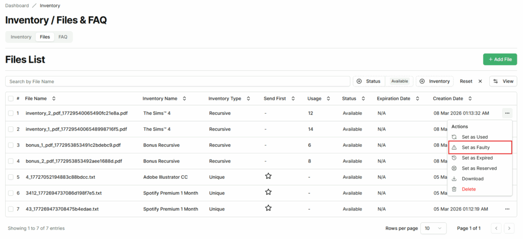 - Files marked as Faulty will not be sent to buyers, ensuring that only valid files are delivered.