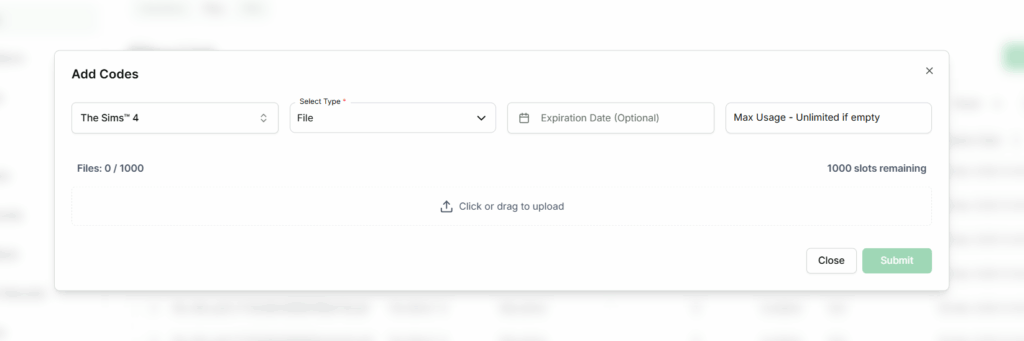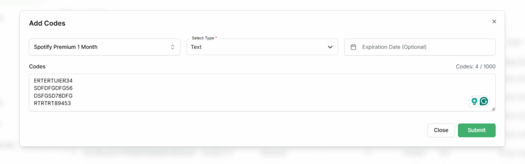 This allows sellers to easily add multiple codes or keys in bulk without uploading individual files.
