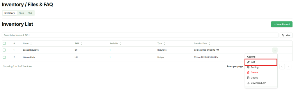 Once all required details are filled and conditions are met, the new inventory item will be created successfully. Understanding Unique and Recursive codes ensures proper delivery of digital products to customers. With this, the process of adding a new inventory item is complete.