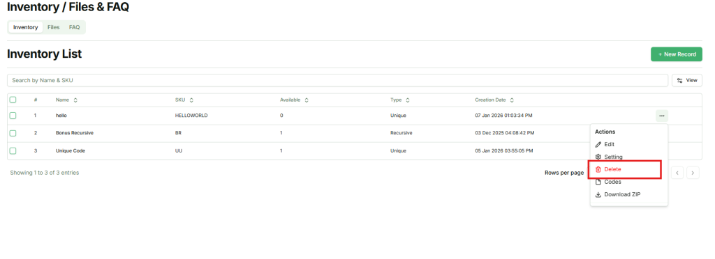 ⚠️ Note: Deleting an inventory item will also remove all files associated with it from the Inventory. This action cannot be undone.