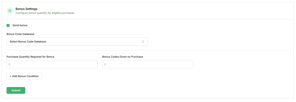 - Multiple bonus conditions can be configured per product