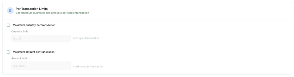 - Maximum Quantity per Transaction
