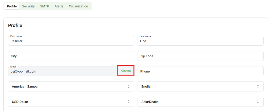 Clicking Change will open a modal where you can add a new email.