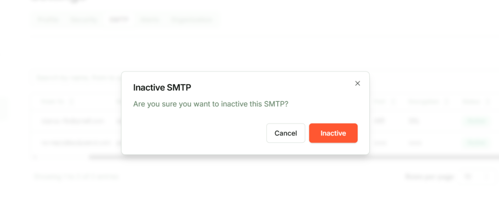 Click Confirm in the modal. The SMTP will be permanently deleted.